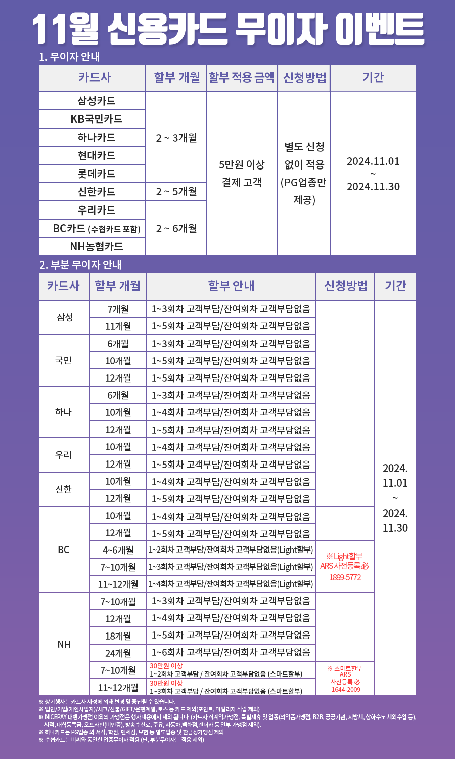 2025년 10월 카드사 무이자 및 부분 무이자 안내