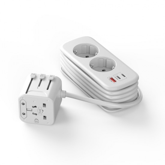 멀티어댑터 / 케이블형 / 코드수:2구 / 전선길이:1.8m / 2500W / 여행용 / 안전기능:과부하차단 / USB충전 / USB-PD:2포트 / USB-A:1포트 / 플러그타입:유럽(EU),영국(UK),미국(US),호주(AUS)